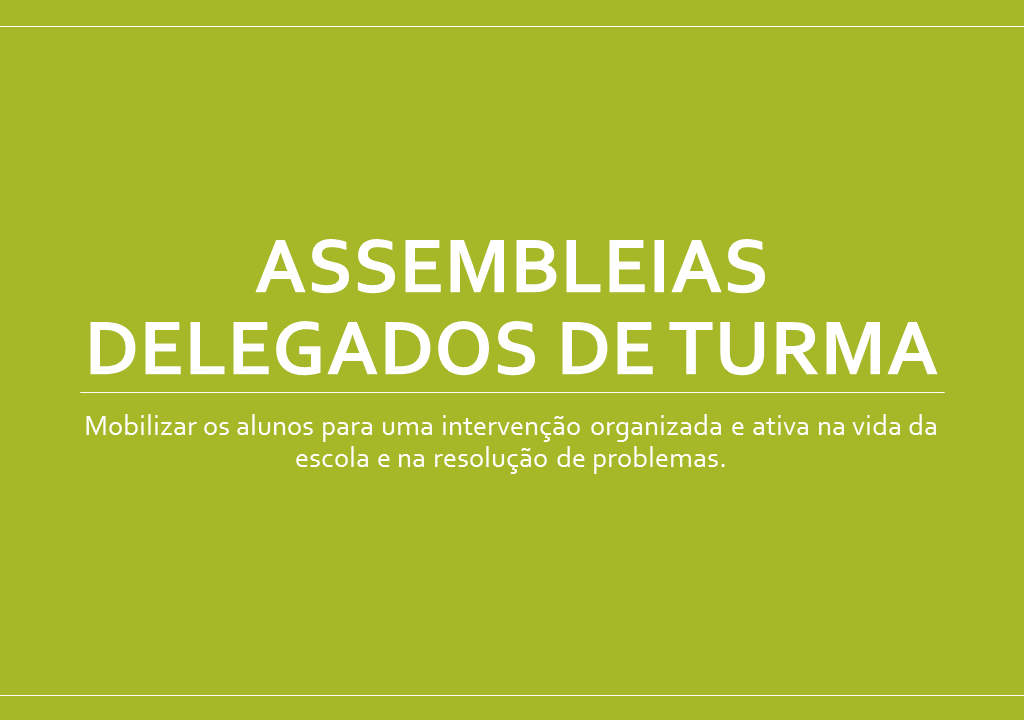 Este espaço visa promover as assembleias de delegados de turma, enquanto espaço de partilha, discussão e construção de cidadania para uma intervenção ativa dos alunos na vida da escola e na resolução de problemas.