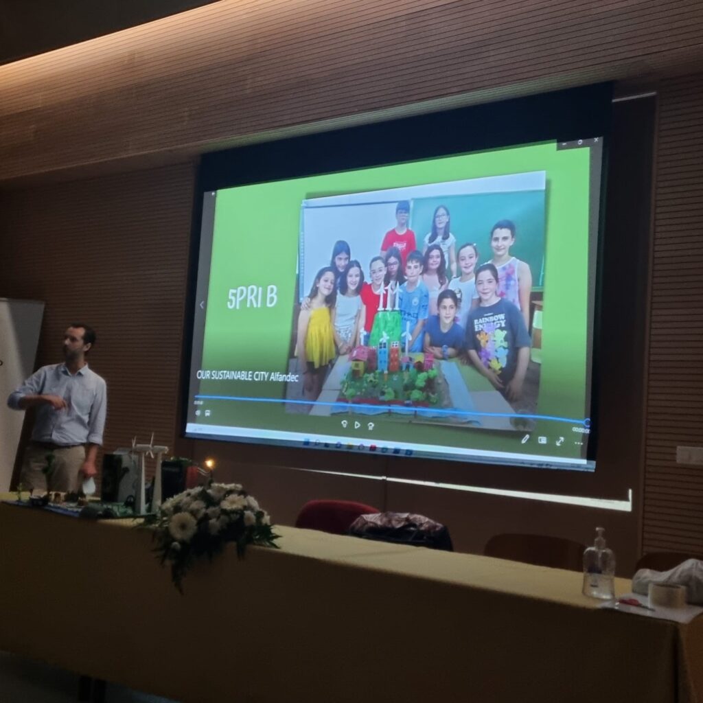 Estivemos de seguida a debater conceitos da Cidadania Ambiental (o Kahoot é sempre um jogo que todos gostamos!) e demos o exemplo, com a oferta a todos os participantes de um saco de compras, para evitarmos o plástico. Apresentamos depois as nossas ideias para uma cidade sustentável. Talvez mais cedo do que imaginamos seja possível viver num destes locais tão agradáveis!…