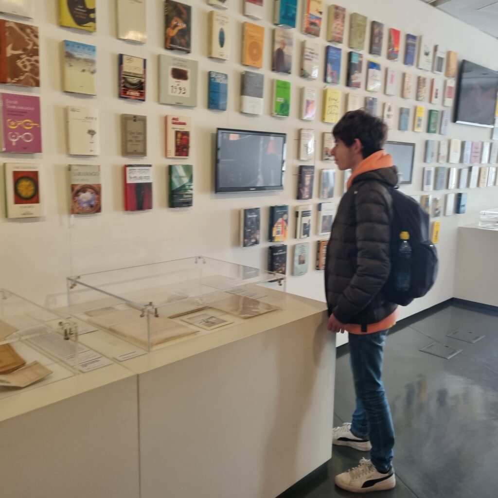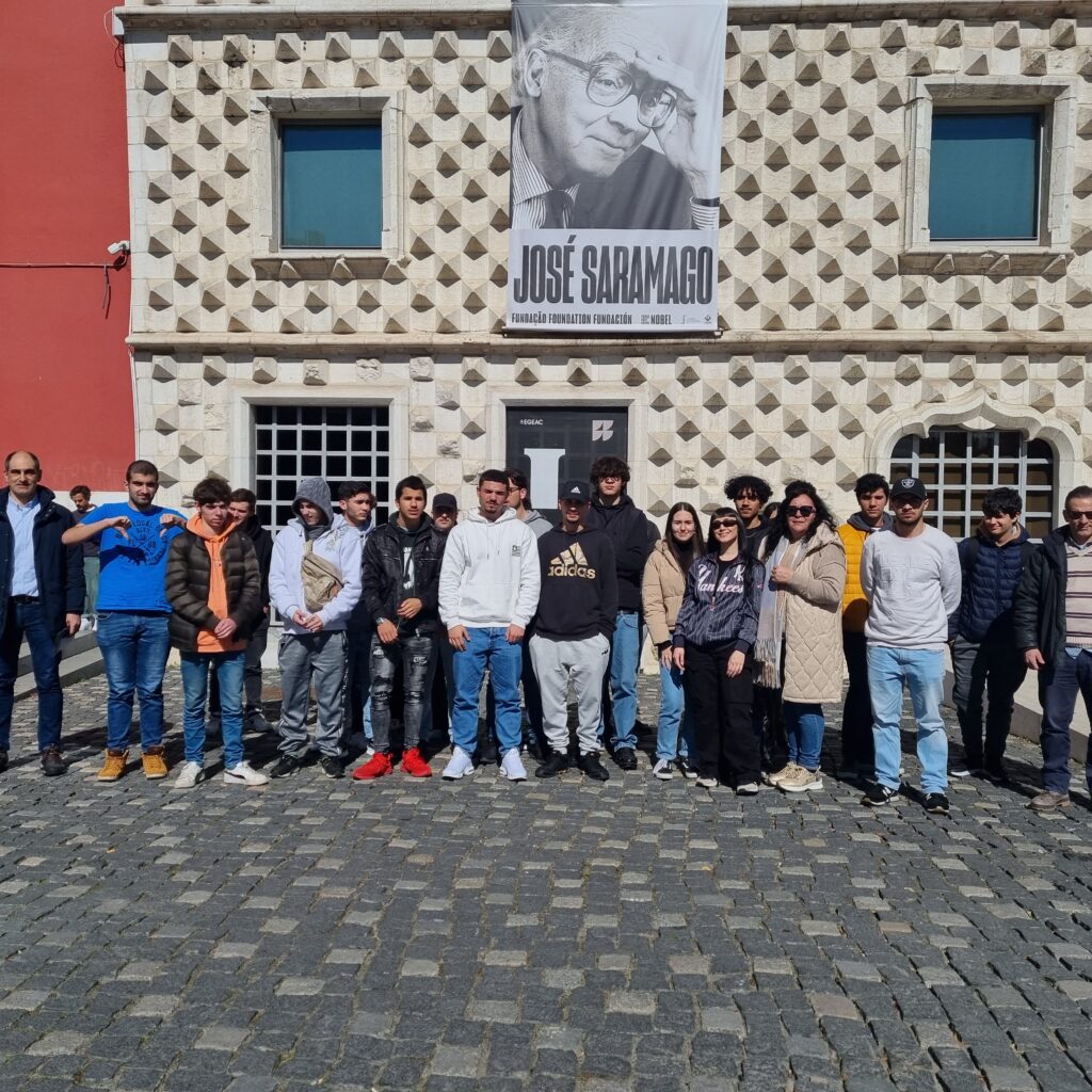 A primeira paragem foi na “Casa dos Bicos”, Fundação José Saramago, onde tiveram a possibilidade de conhecer a história de vida do escritor, bem como a sua produção literária e ainda visualizaram um vídeo realizado por André Raposo e João Descalço a partir da crónica “Carta para Josefa, minha avó” escrita por José Saramago. Depois deste momento mais expositivo, percorreram os pisos da Fundação, nos quais existe a Livraria, a exposição permanente intitulada “José Saramago: A semente e os frutos” com livros e fotos do autor e dos momentos mais marcantes da sua vida; bem como artigos, agendas, manuscritos e a medalha de ouro que recebeu enquanto Prémio Nobel da Literatura.