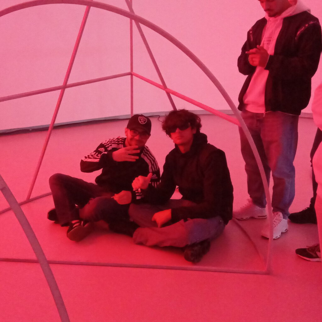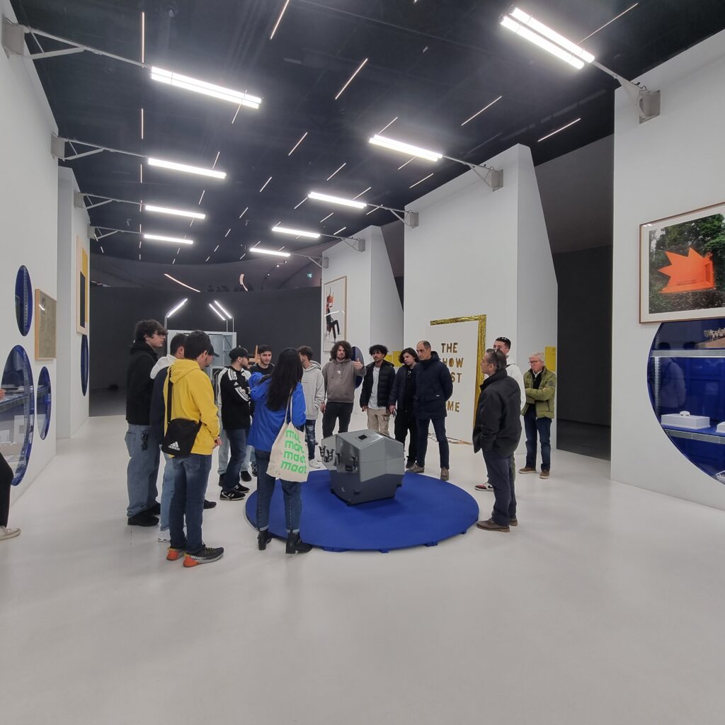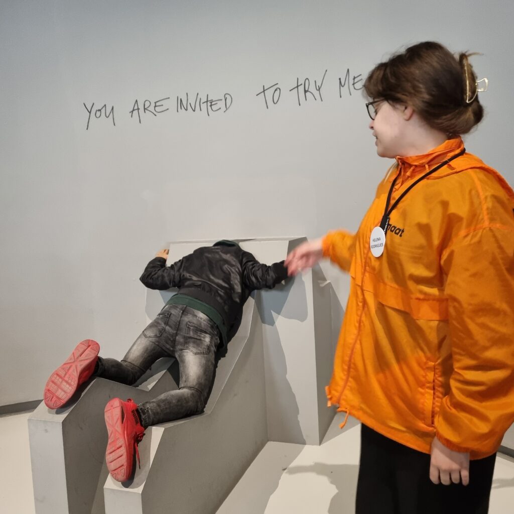 Logo pela manhã, após o pequeno-almoço, seguiram rumo até a Belém, nomeadamente ao Museu de Arte, Arquitetura e Tecnologia (MAAT). Foram recebidos na entrada do edifício e com a sua respetiva guia, foram levados até à Galeria Oval, nomeadamente à exposição individual de Didier Fiúza Faustino: 1995–2022. Baseando o seu título em duas peças separadas (Exist, 2016; Resist, 2017), a exposição da autoria de Didier Fiúza Faustino revela uma tensão propulsora presente em todas as explorações criativas e a sua ressonância continuada perante as condições agravantes da sobrevivência física e mental no mundo de hoje. Seja na forma de instalações, filmes, esculturas, projetos editoriais, arquitetura temporária ou obra construída, o “corpo” surge como um tropo recorrente e uma medida de individuação e, deste modo, como um local económico e político de disputa.