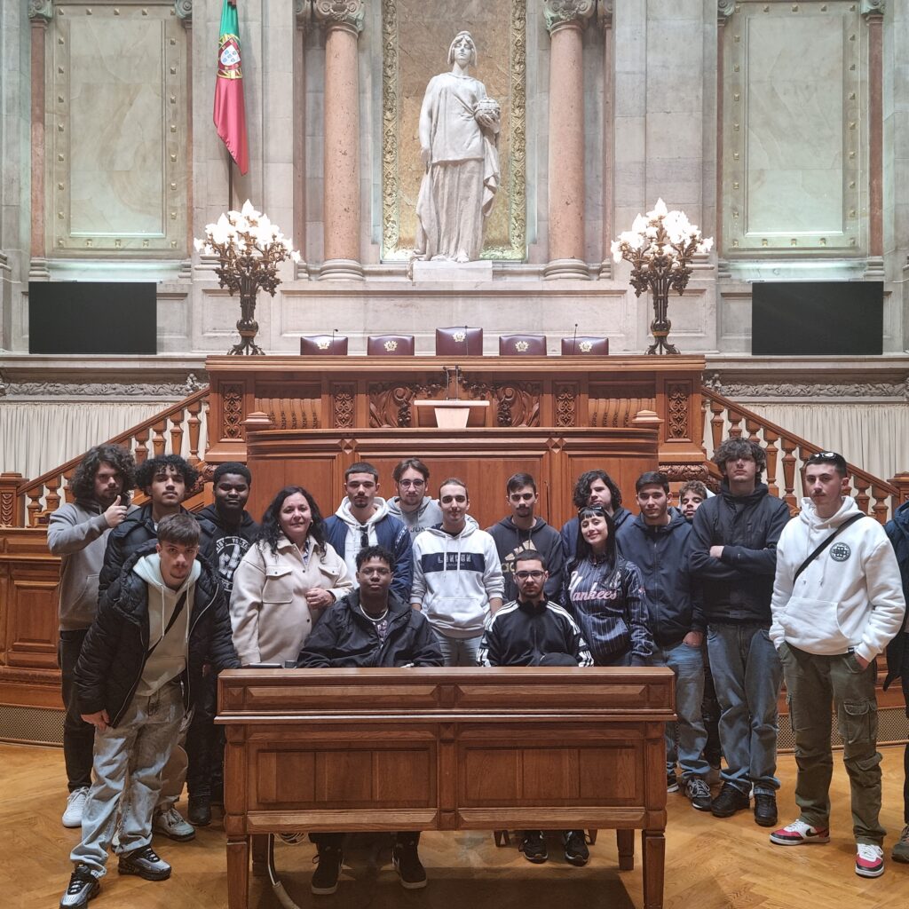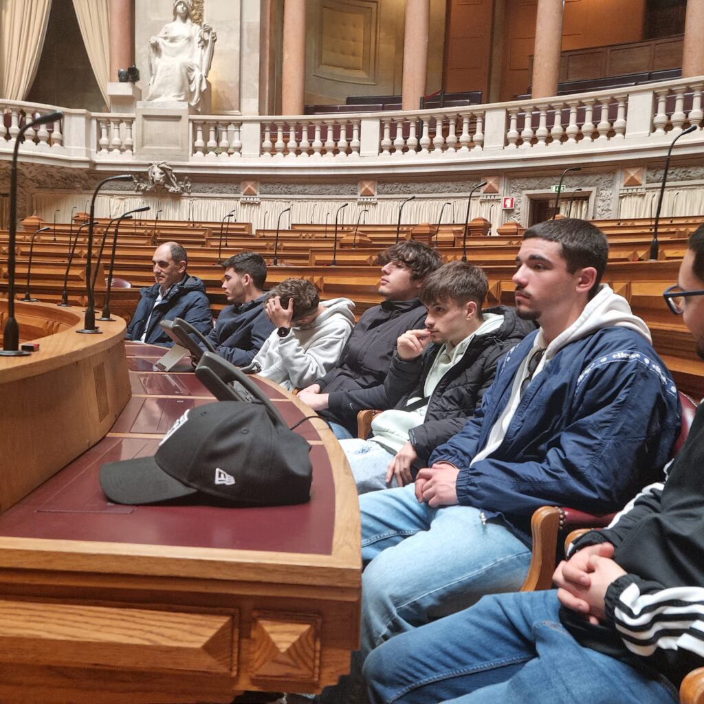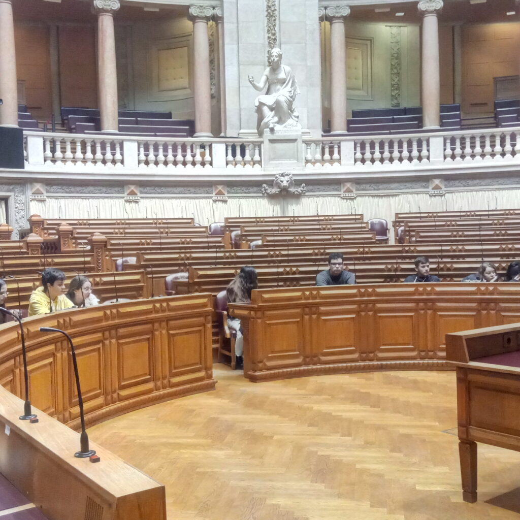 Seguidamente, os alunos foram divididos em dois grupos e foram acompanhados pelos respetivos guias que, gentilmente, nos conduziram por uma breve visita, aos principais espaços e salas do Parlamento, nomeadamente as Salas das Sessões, dando a conhecer a história do