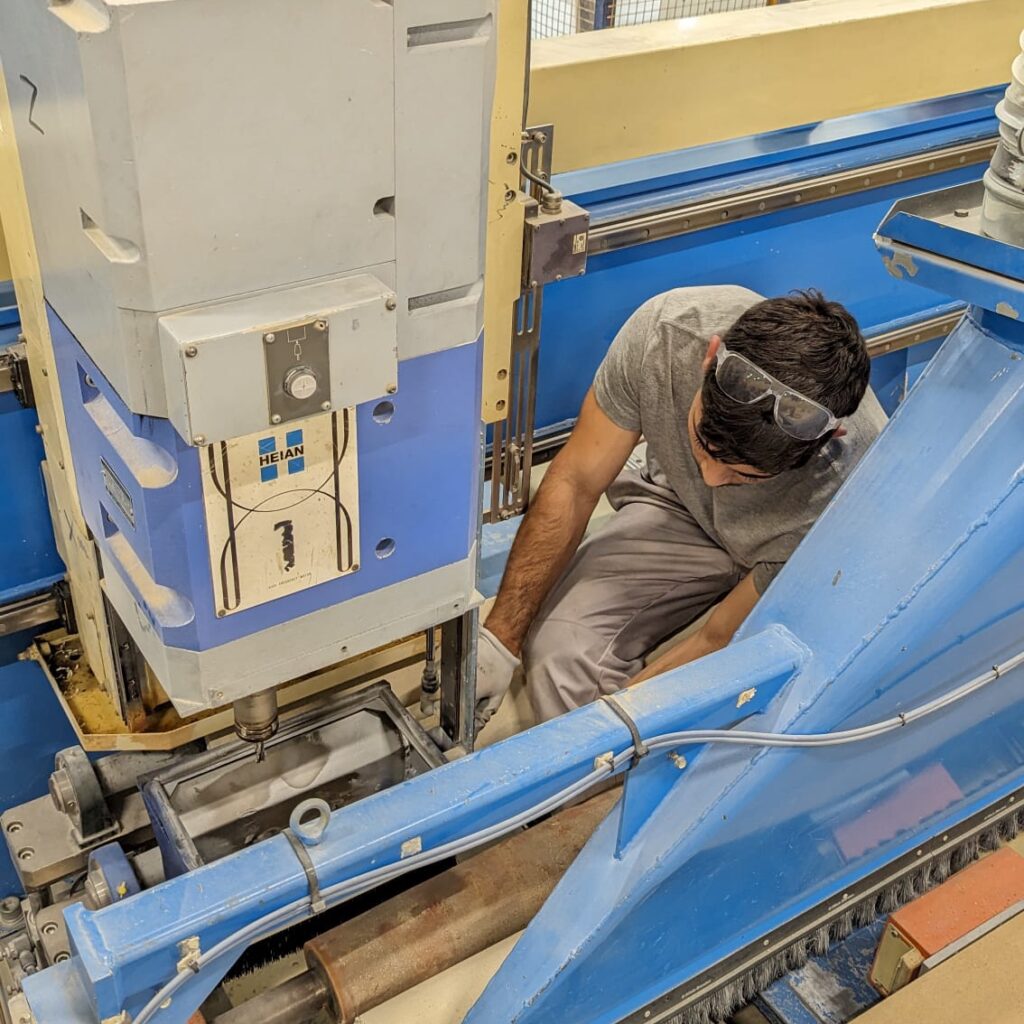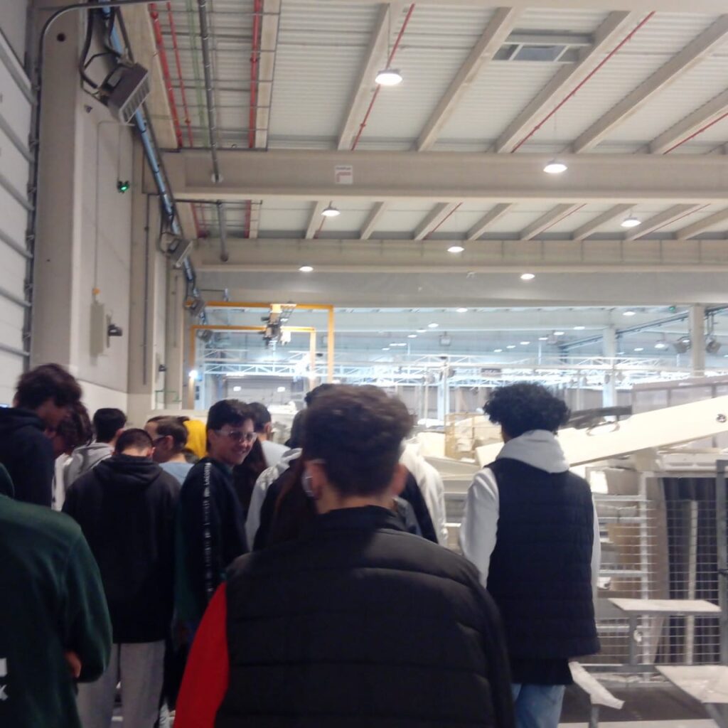 Após preparação da entrada, equipados com o vestuário, calçado e proteções necessárias, percorremos todos as naves que fazem parte do processo produtivo da empresa, com foco na automação, manutenção, qualidade, e na logística, mas também de todo o trabalho que se realiza nesta fábrica, desde a preparação da matéria-prima, restante processo de fabrico, embalagem e preparação para envio para o cliente.