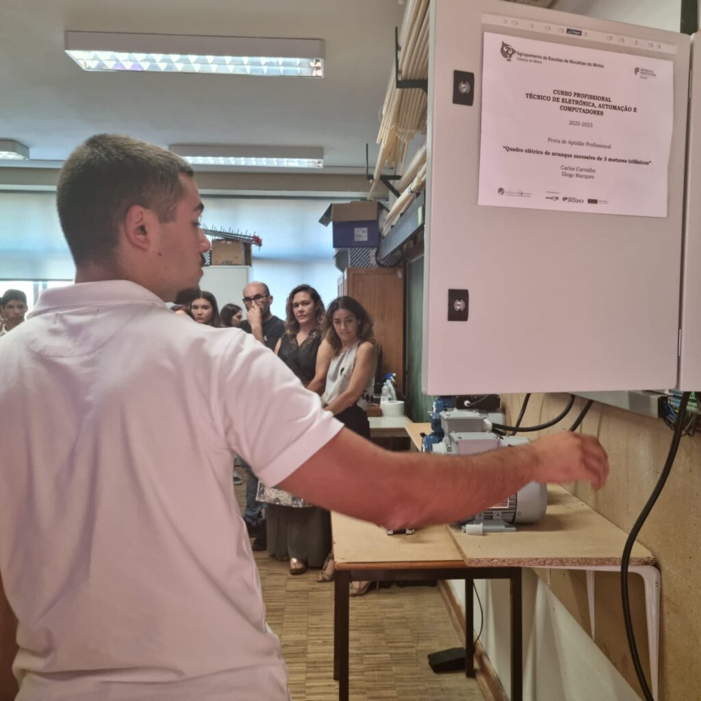 No dia 17 de maio de 2022, os alunos e alunas do 12.º D, Cursos Profissionais de Técnico de Instalações Elétricas e Técnico de Qualidade apresentaram e defenderam as Provas de Aptidão Profissional (PAP).