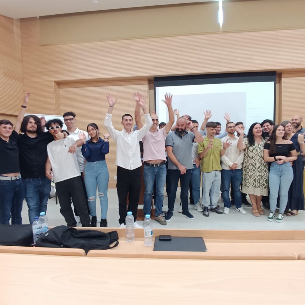 No regresso à escola, tiramos uma foto do grupo, que a empresa depois usou nas redes sociais para dar a notícia da nossa visita.