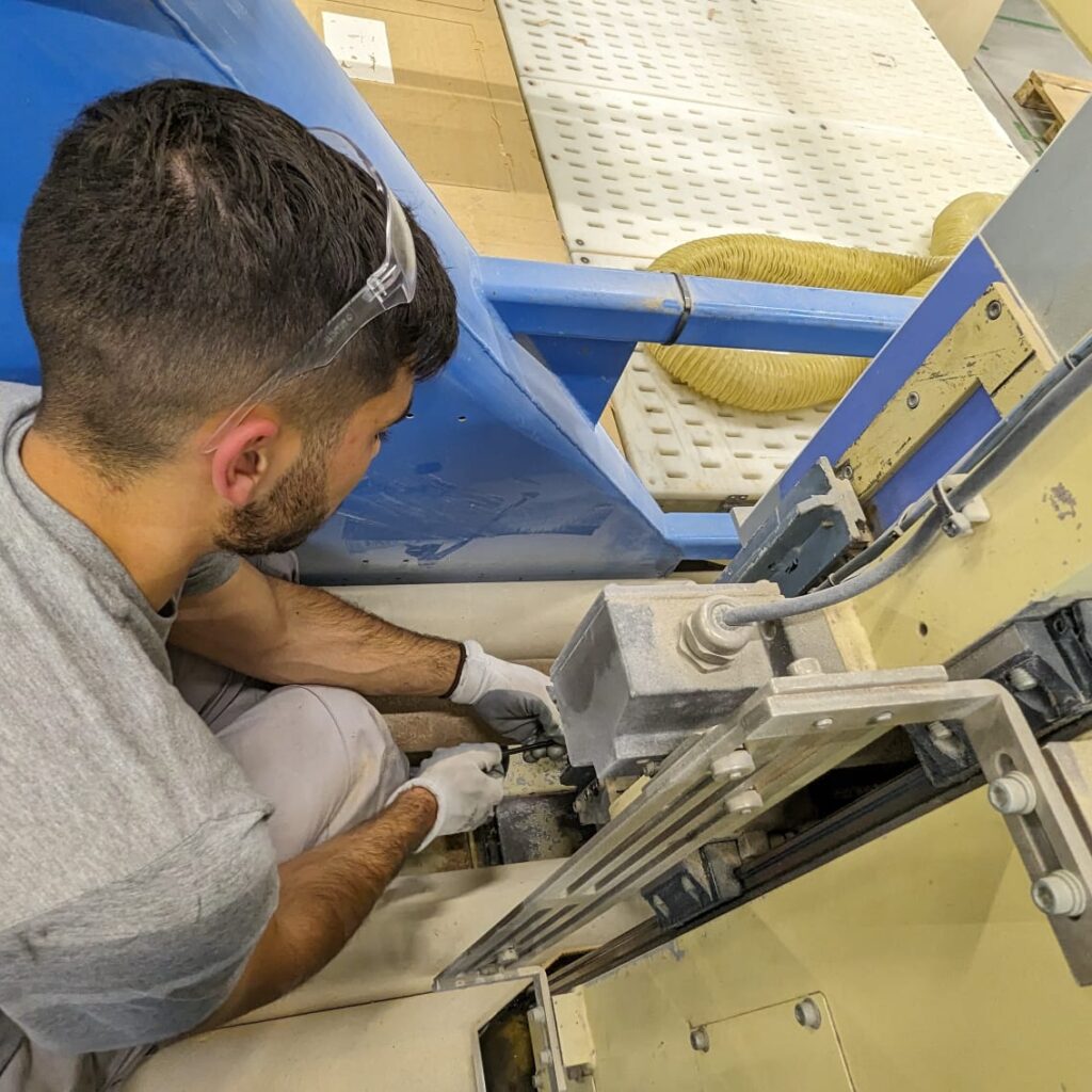 Após preparação da entrada, equipados com as proteções necessárias, percorremos todos os postos de trabalho que fazem parte do processo produtivo da empresa, com foco na qualidade, e na logística, mas também de todo o trabalho que se realiza nesta fábrica, desde a preparação da matéria-prima, restante processo de fabrico, embalagem e preparação para envio para o cliente.